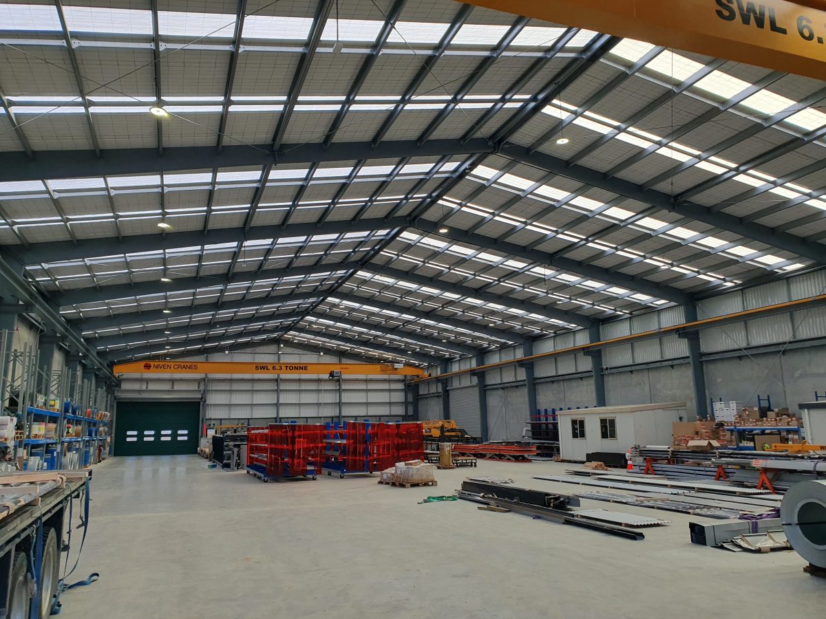 Roofing Industries Invercargill Location: Invercargill Length: 61.3m Width: 29.3m Knee Height: 8m Floor Area: 1796m2 Building Use: Workshop or Factory Cladding: TrimRib Portal System: DonoBeam Features: 2 x 6.3T 27m Span Gantry Cranes Get in touch Find an expert Gallery Enlarge image Enlarge image Enlarge image View Full Gallery