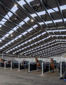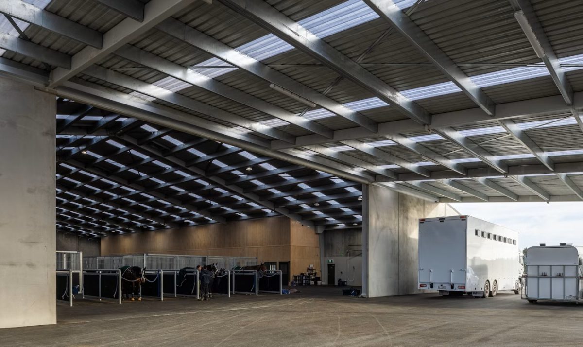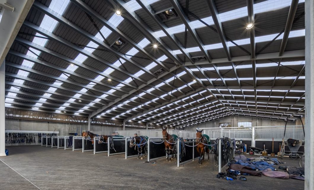 Stockman Stables Canterbury Location: Rolleston, Canterbury Length: 58.9m Width: 41.8m Knee Height: 4.9m Floor Area: 2465m2 Building Use: Farm Shed Portal System: DonoBeam Features: Commerical racing stables - Donobeam, wide clear span, canopies Get in touch Find an expert Gallery Enlarge image Enlarge image Enlarge image View Full Gallery